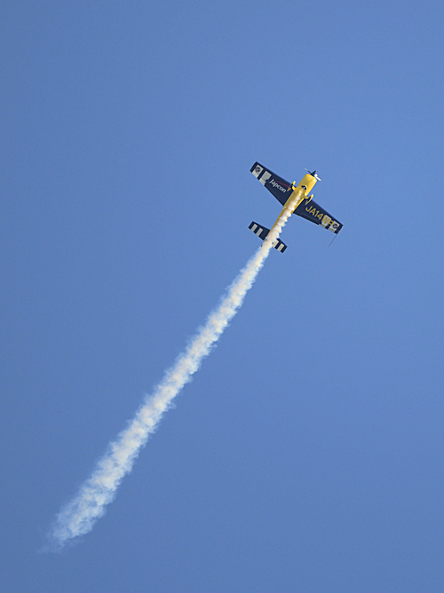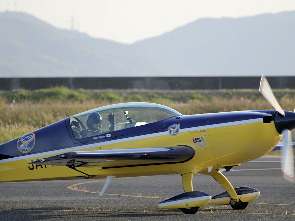ピッツとの編隊飛行の予行終了後、エクストラ300Lのウィスキーパパ単独で予行を実施。