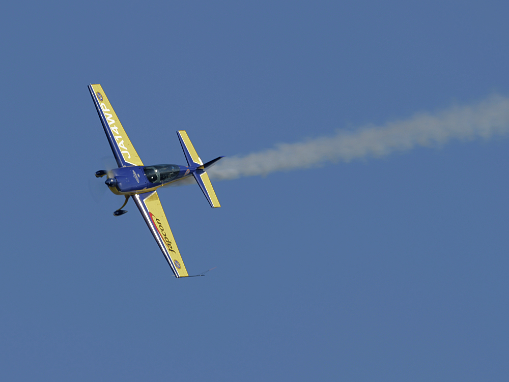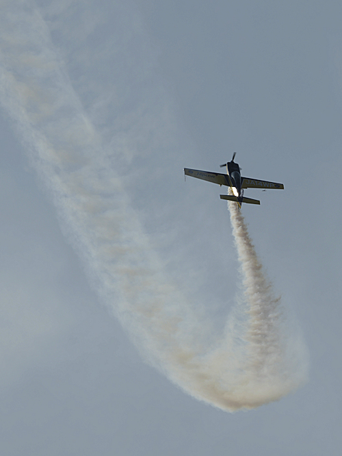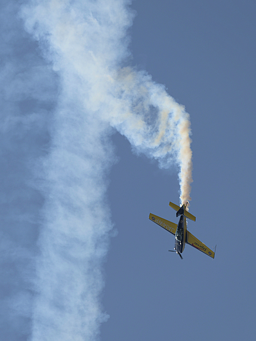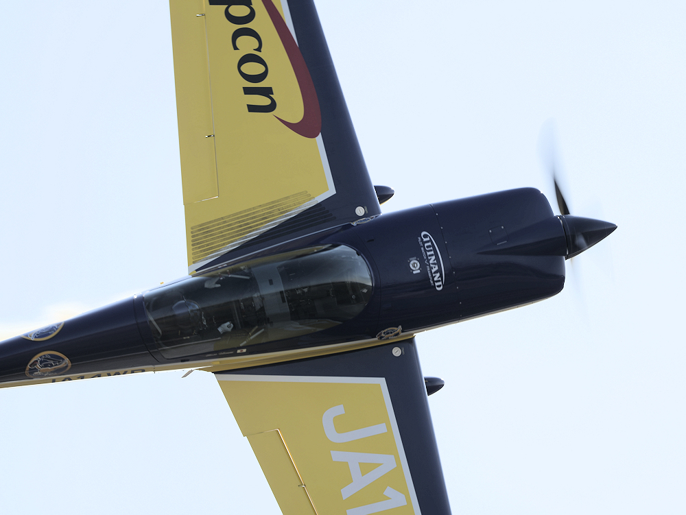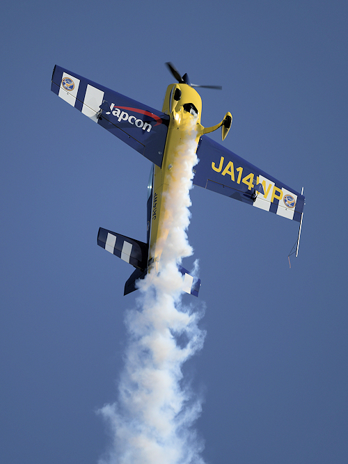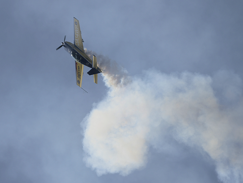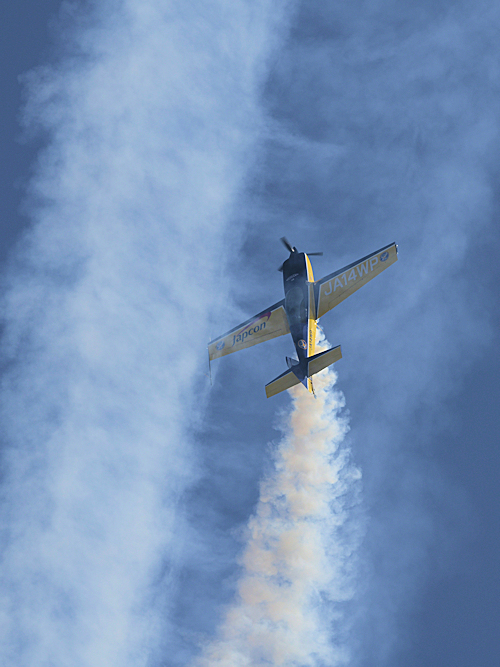 展示飛行のトリはウィスキーパパによるエクストラ300Lのエアロバティック。例のごとく、最初から最後までクライマックスです。