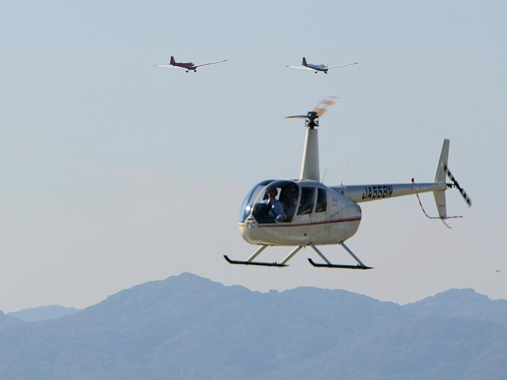 グライダーなどは割とのんびり飛びますので、進入旋回中でも遊覧飛行は実施されていました。空対空撮影の機会もあったかも。