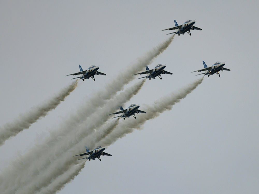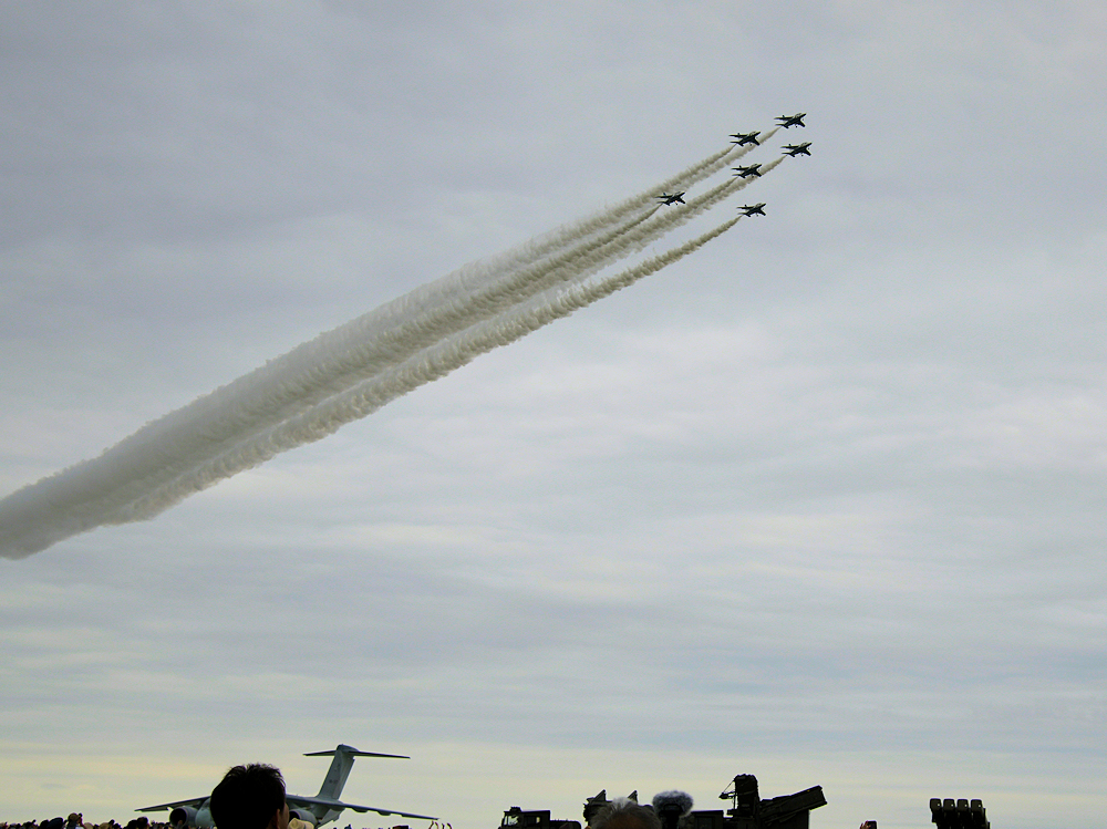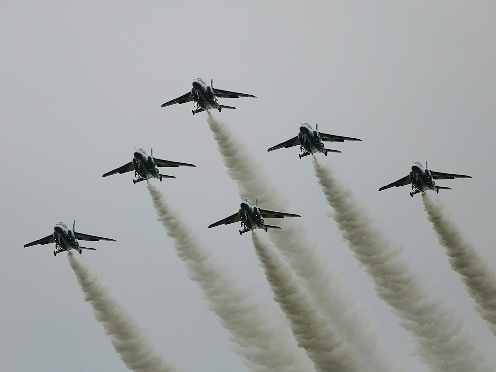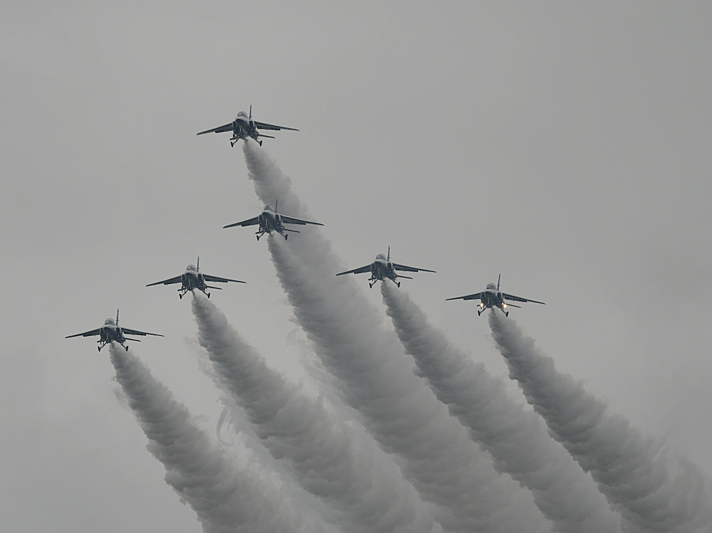 厚い雲が広がる松島基地航空祭。ここが拠点のブルーインパルスは午前と午後、二回の展示飛行を実施。