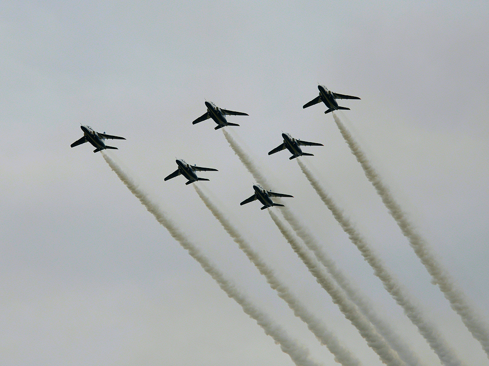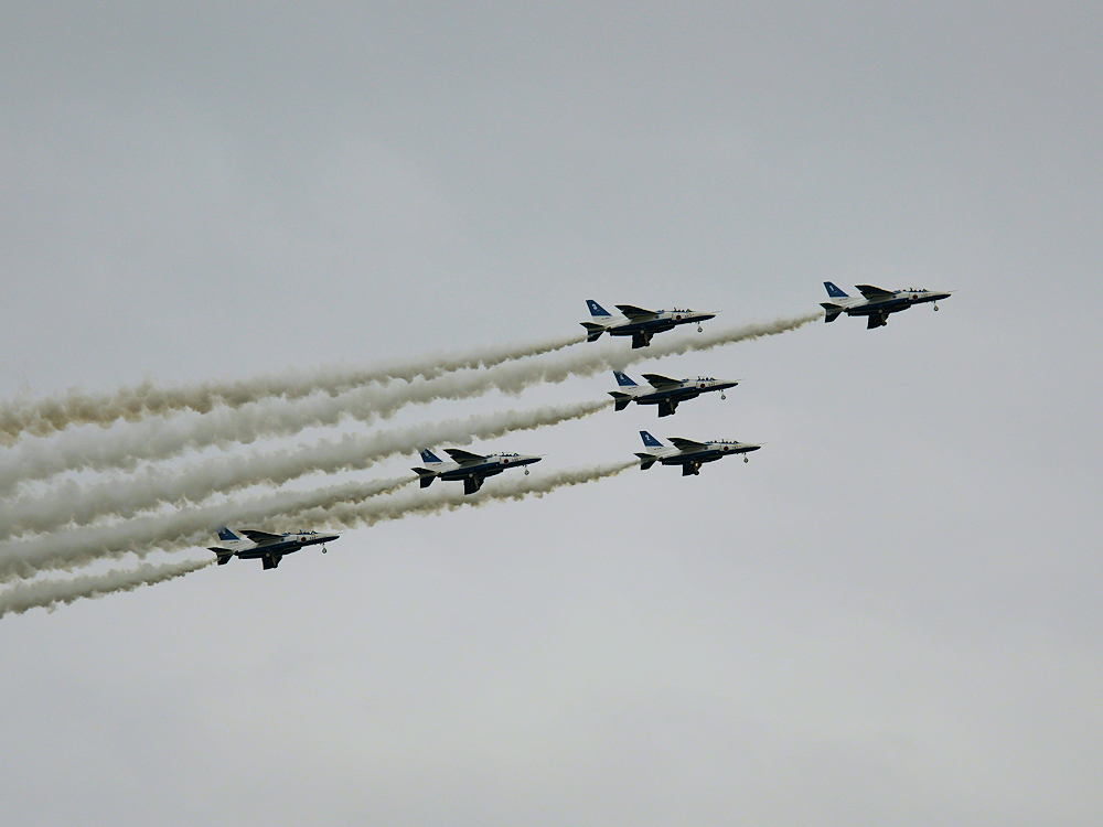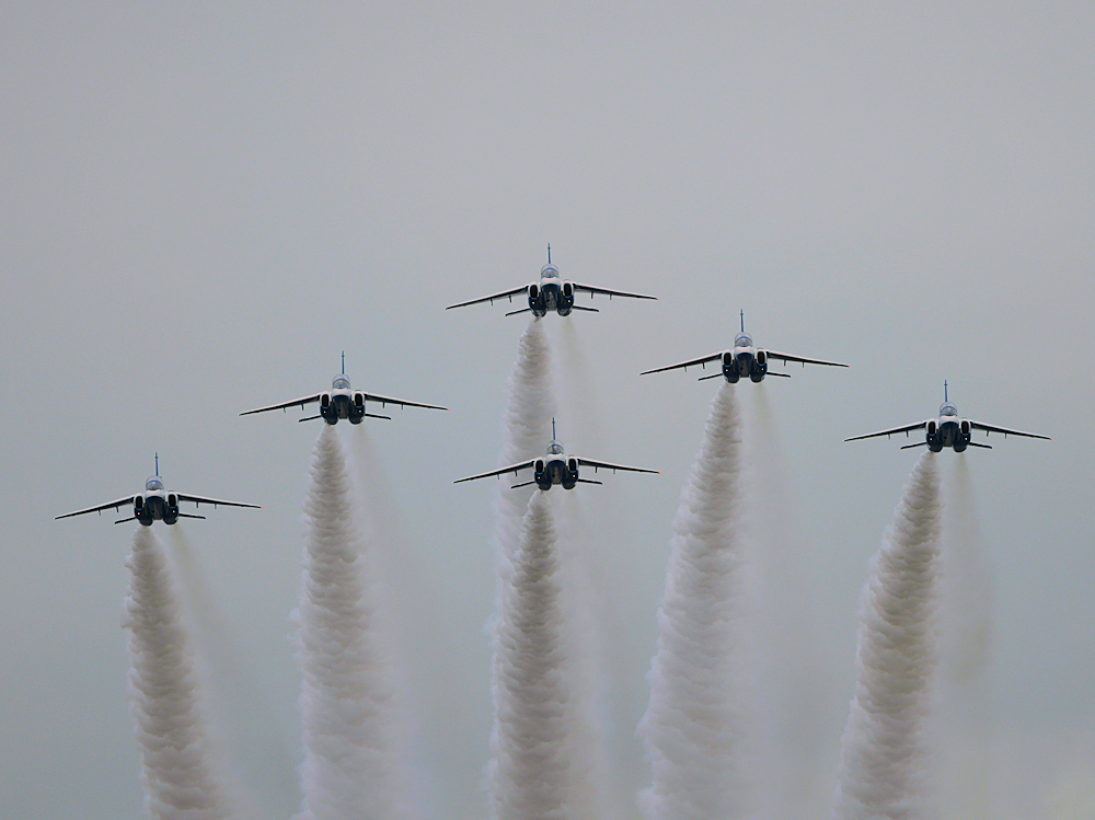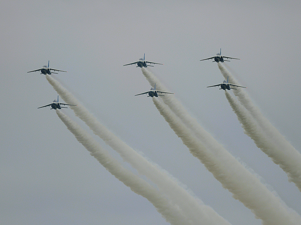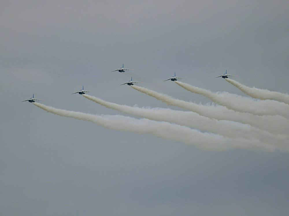 厚い雲が広がる松島基地航空祭。ここが拠点のブルーインパルスは午前と午後、二回の展示飛行を実施。