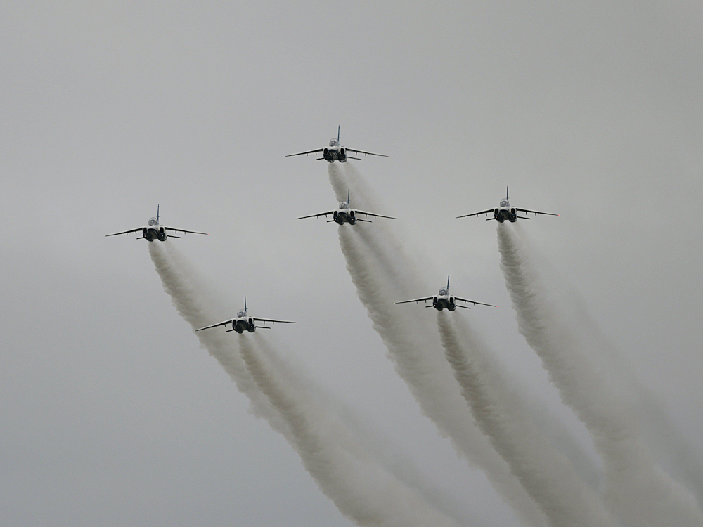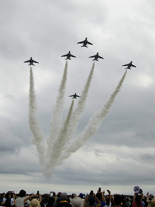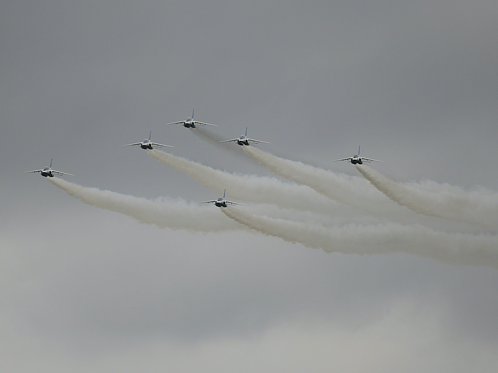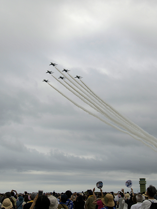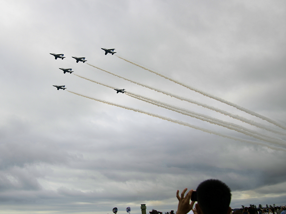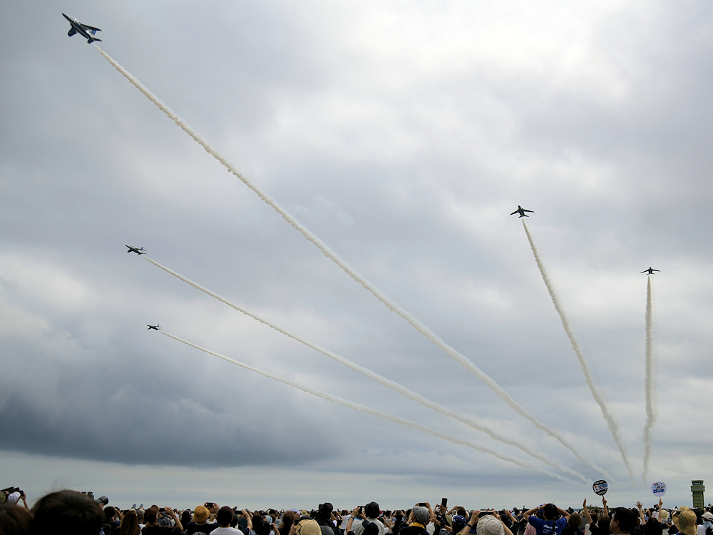 厚い雲が広がる松島基地航空祭。ここが拠点のブルーインパルスは午前と午後、二回の展示飛行を実施。