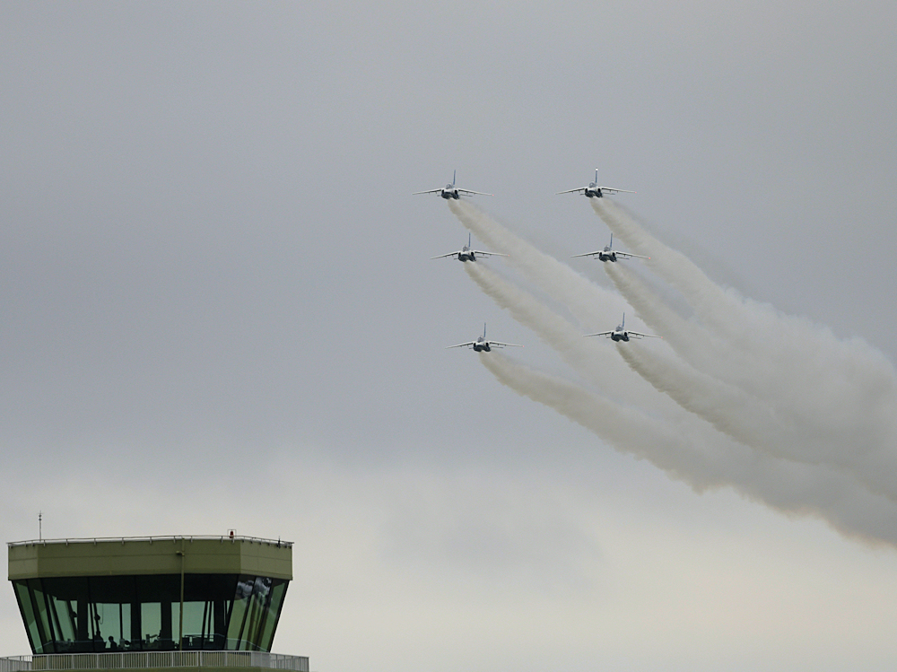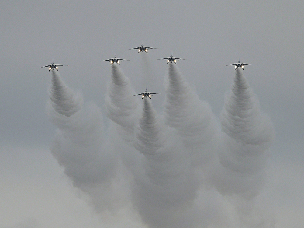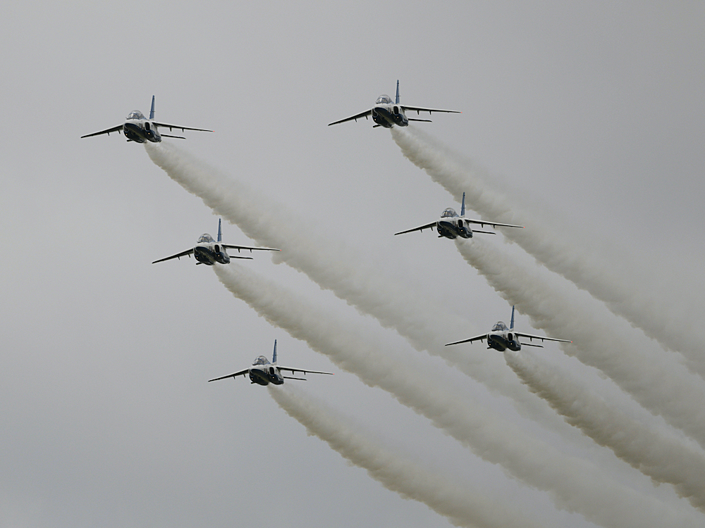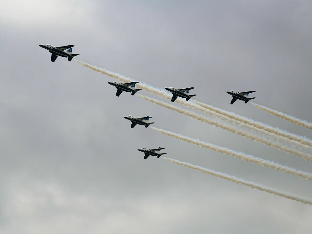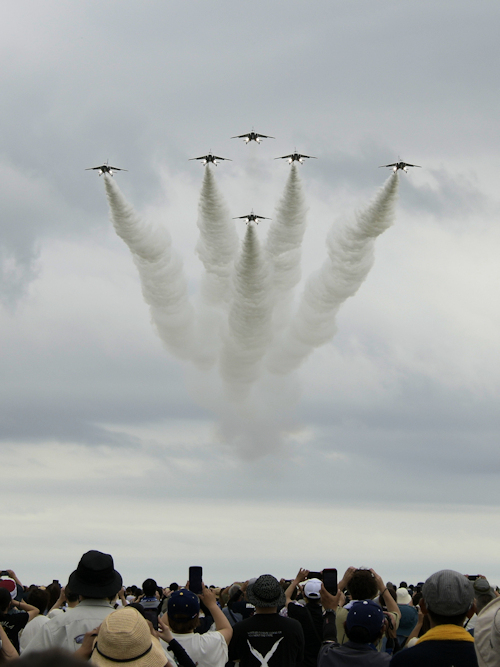 厚い雲が広がる松島基地航空祭。ここが拠点のブルーインパルスは午前と午後、二回の展示飛行を実施。