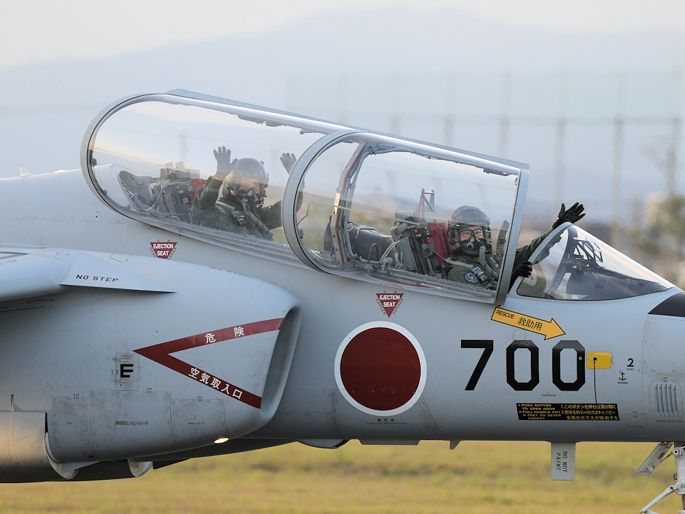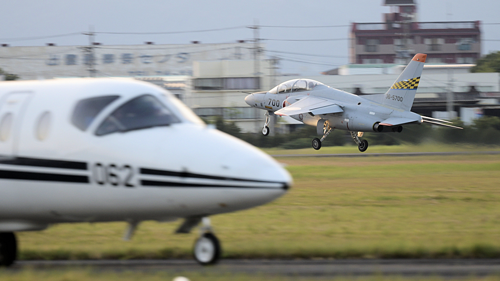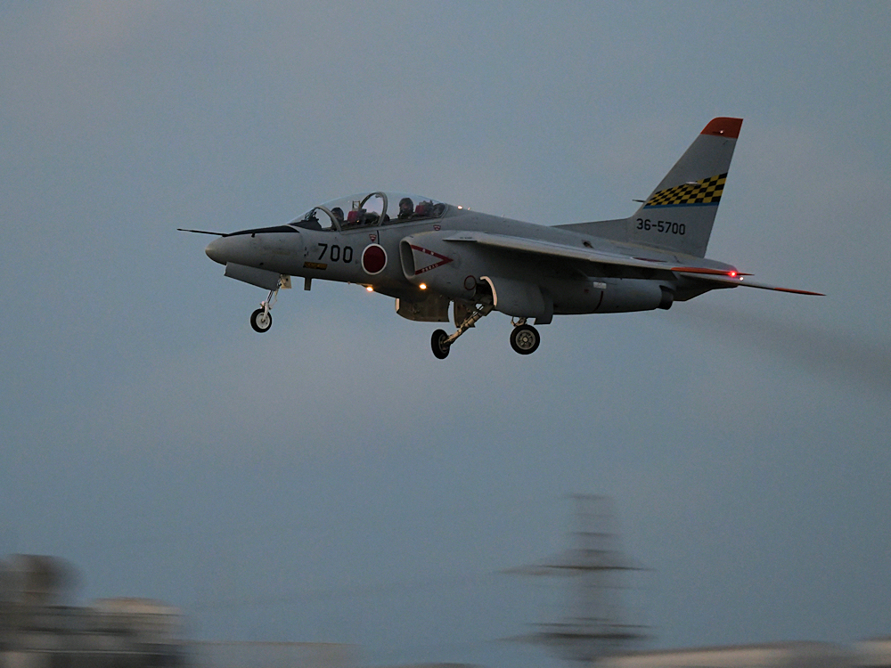 連続離着陸訓練を行っていたT-4、T-400が一機また一機と着陸していきます。