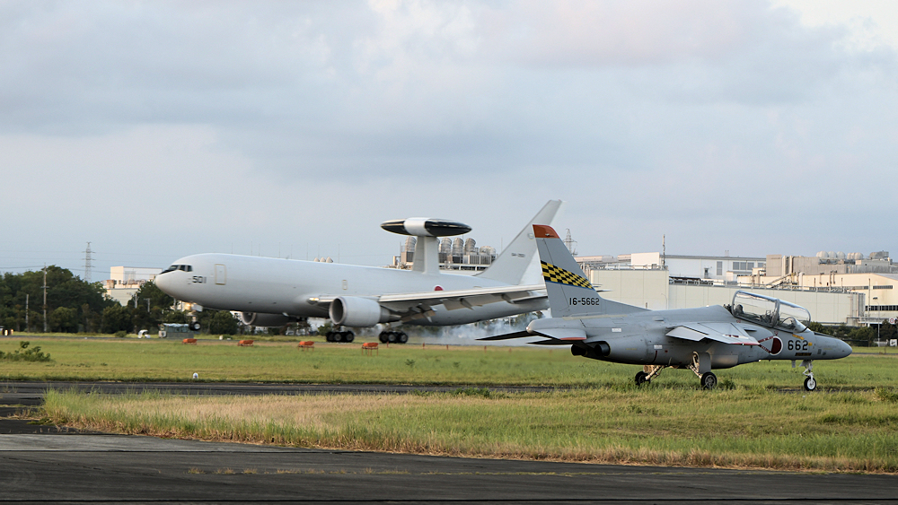 と、T-4のお手振りを撮っていると、E-767がいきなり降りてきたり・・・