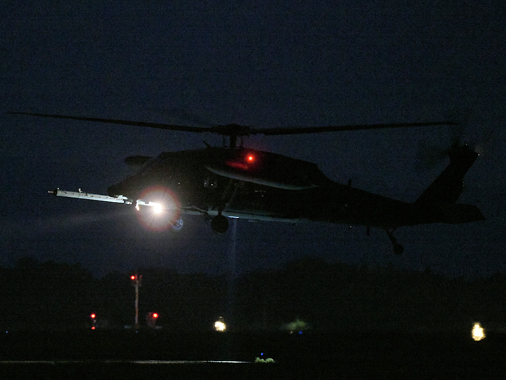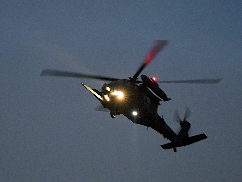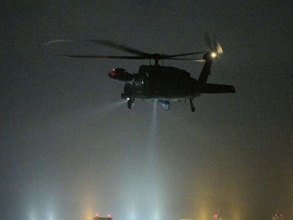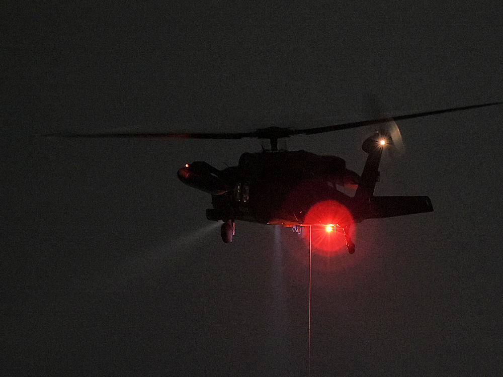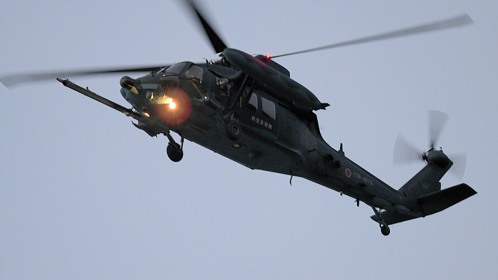 訓練から戻り、救難エプロンに降りたUH-60が広報館前に進出。