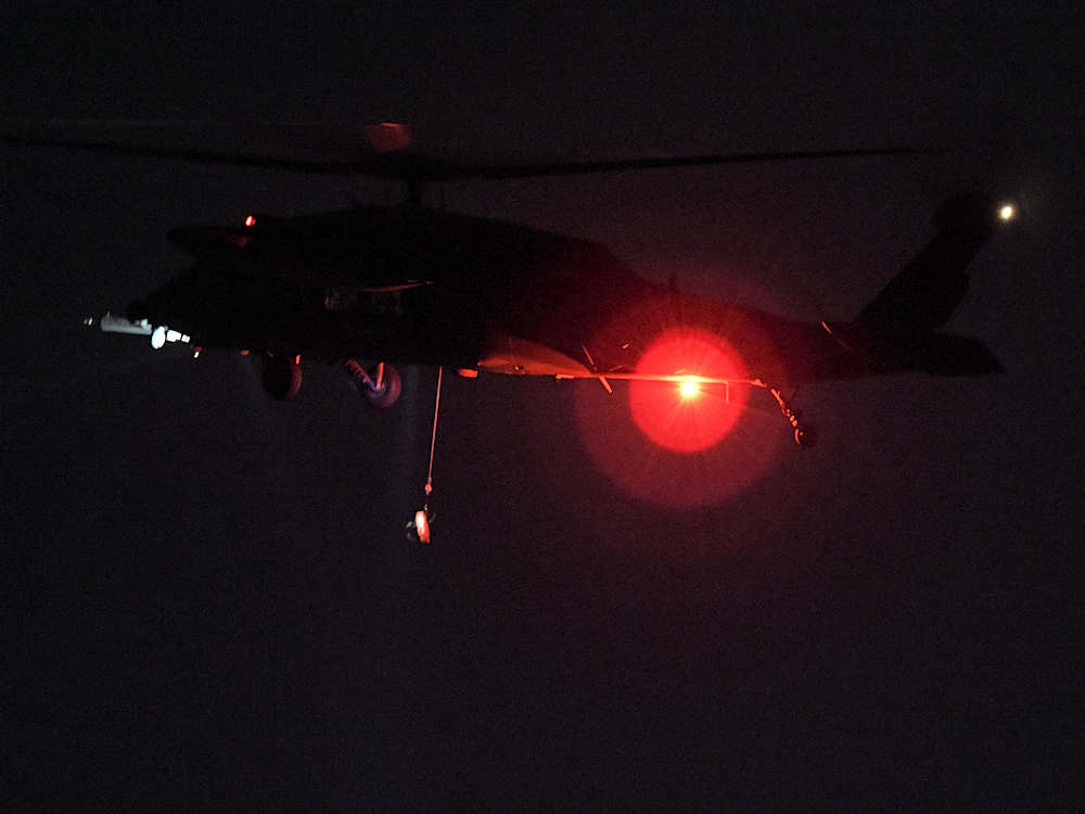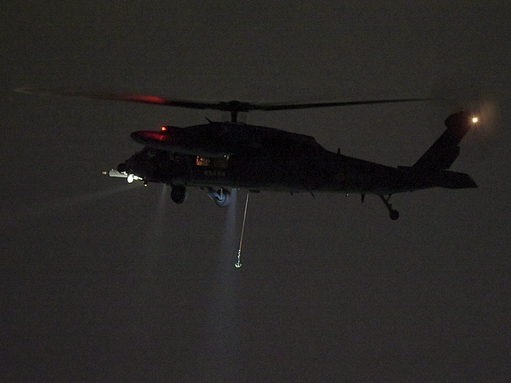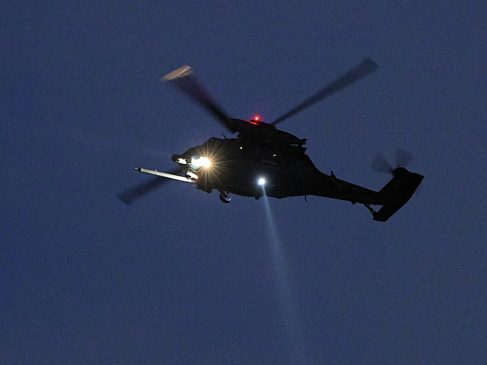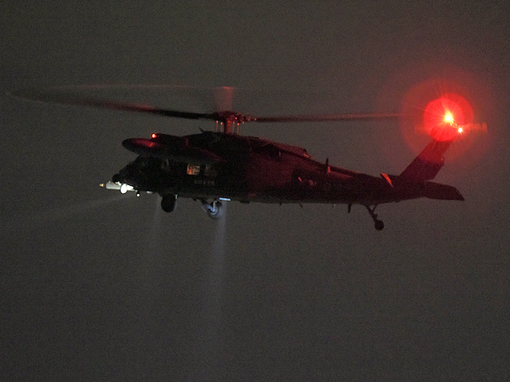 訓練から戻り、救難エプロンに降りたUH-60が広報館前に進出。