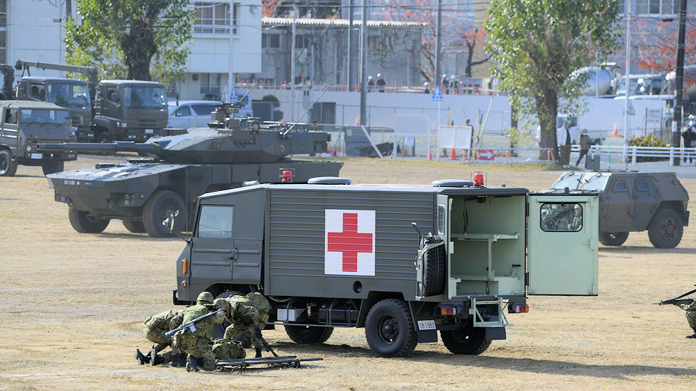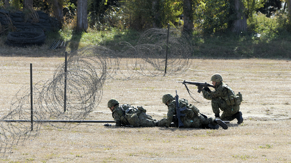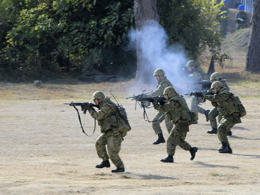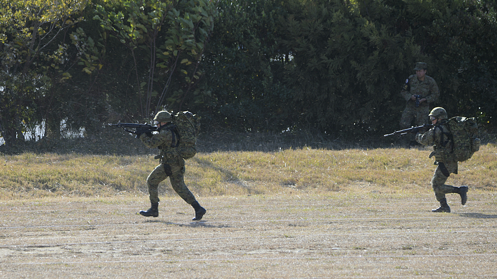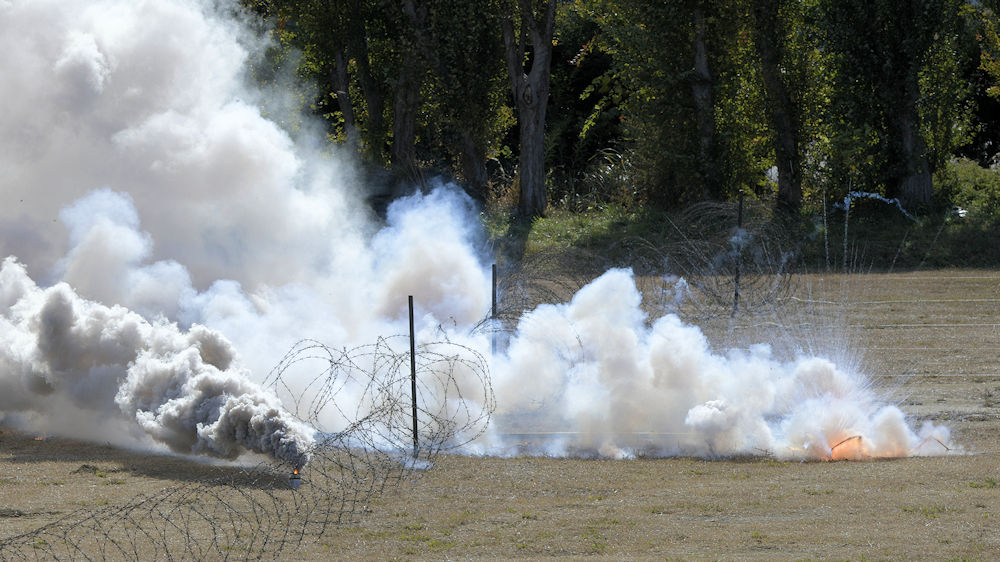 いよいよ大詰め。砲迫や機動戦闘車の援護砲撃のもと、爆薬筒で有刺鉄線を分断し、敵陣に突撃、奪還します。