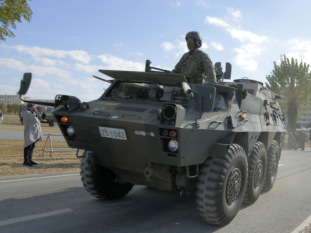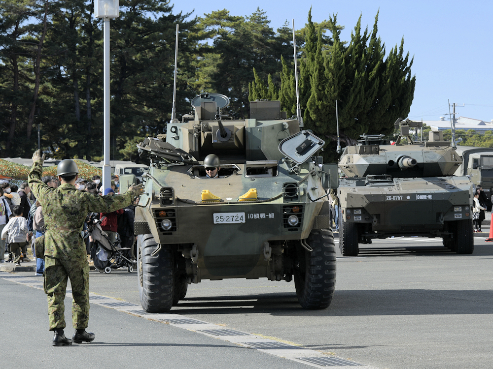 歩道から撮影できるので、装甲する装甲車両などを間近で撮ることができます。