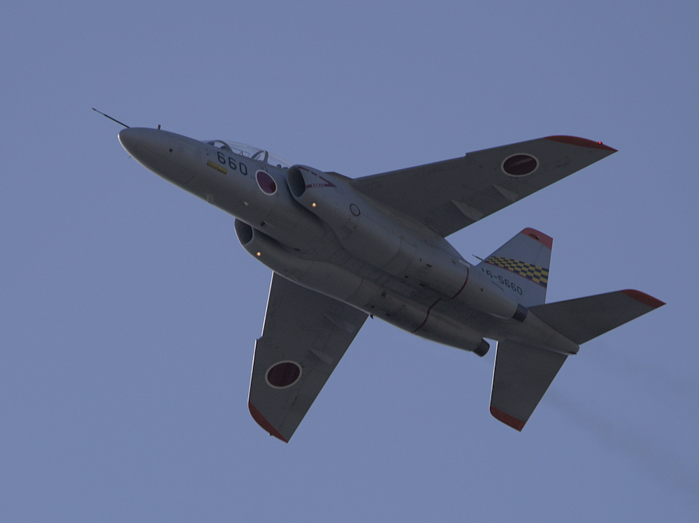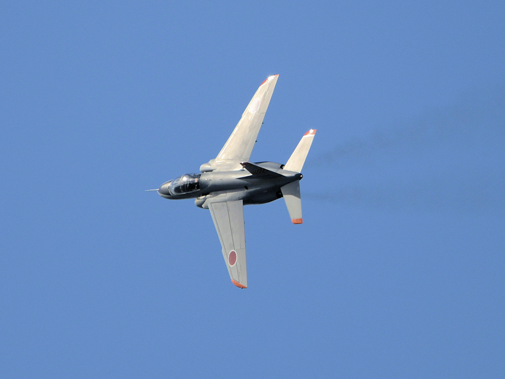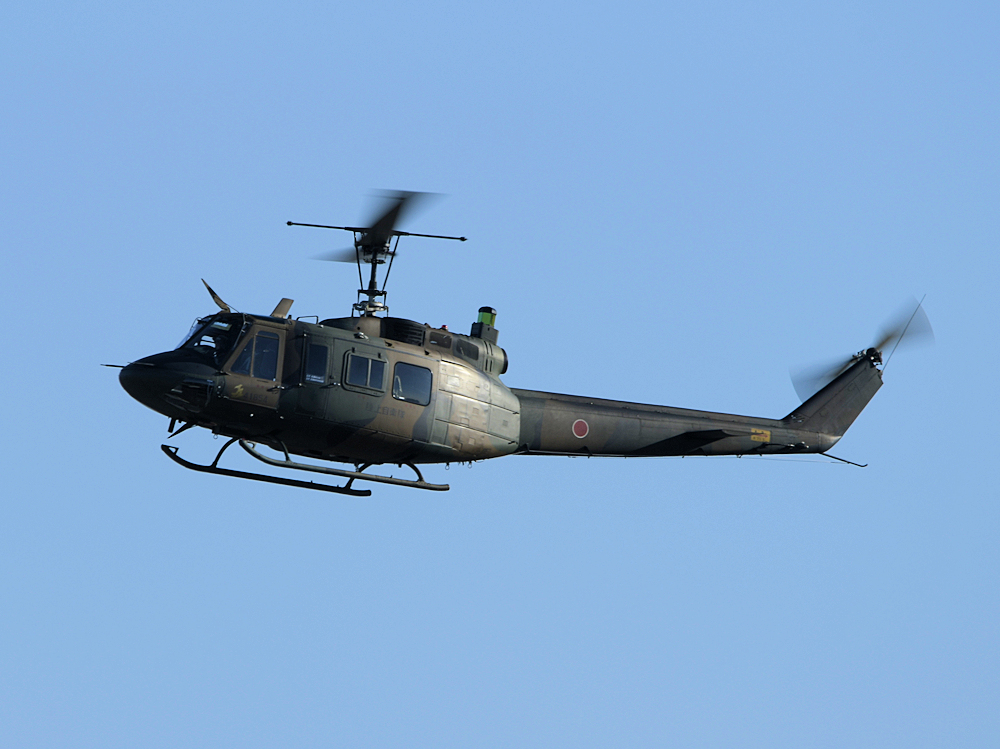 明野駐屯地から支援のUH-1Jが飛来し、準備は整ったようです。 式典に先立ち、浜松基地のT-4が祝賀飛行。ローパス後、8の字旋回を披露。翼を振って挨拶し、浜松基地に帰投します。 |