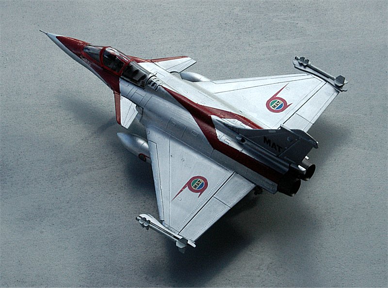 | ラファールはタミヤ=イタレリの1/72のキットを使用しました。UWWでも描かれているのですが、ラファールにマットアロー塗装は似合います。 ただ実際にキットをそのように塗装してみると、見てのとおり、なんとなくセンチュリー・シリーズの趣になってしまいして、「銀色」というのは、あの時代の色なんだなぁ、としみじみ思ってしまいました。そういえば、怪獣と戦う巨人も、最近はなんとなく銀色の割合が少なくなっているような気がしますね。 |