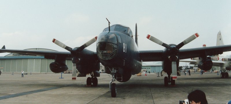 さて、このP-2Jですが、かがみはらの航空宇宙博物館に展示してある機体です。 例のごとく、保存状況は「・・・・」で、せめて塗装くらいは何とかして欲しいものです。 小学生のころ、P-2Vの1/200くらいのプラモを作りまして、これがなかなか気に入ってました。「バラン」を初めて見たのは、就職後だったのですが、そのときに「これはあの・・・」てな感じで、「ああいう機体はP-2V」と思いこんでしまったのです。 パンフにも説明にもしっかり「P-2J」と書いてあったのに・・・ 左は、同じく各務原の機体の主翼。「ここに爆弾を積んで、バランに・・・」とか思いつつ撮りました。 下は、90年ころのどこかの航空祭で撮った機体の発掘写真です。 なんと、各務原の機体と連番です。 |